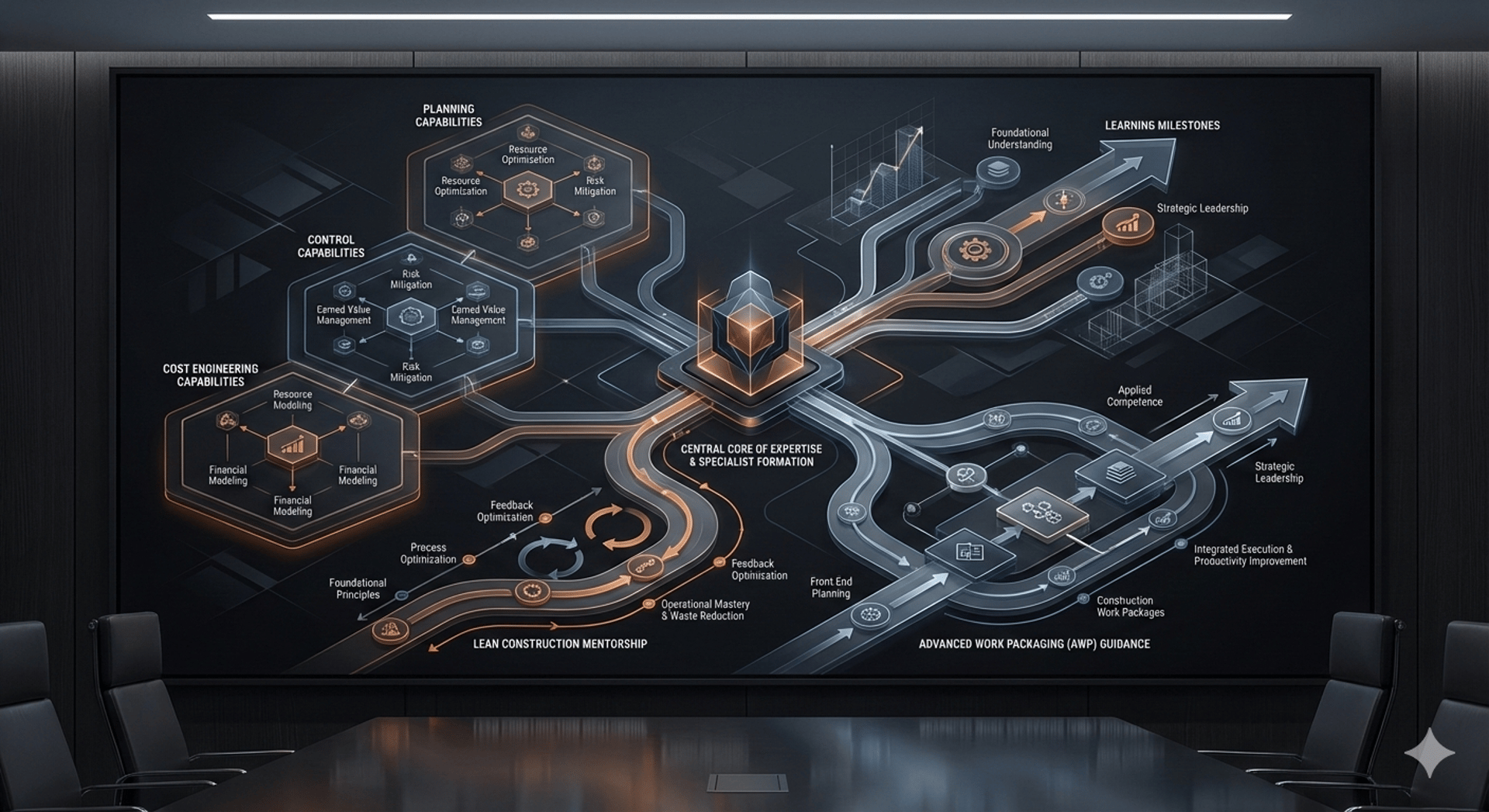 Metodologias Ágeis na Construção: Implementação de AWP (Advanced Work Packaging), Lean Construction e LPS para otimização de fluxo e redução de atrasos.