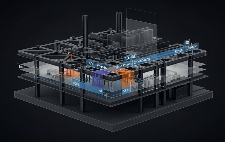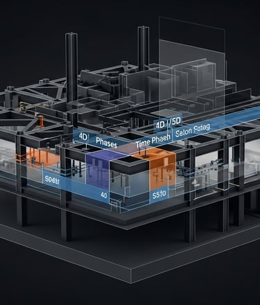 Implementação BIM: Integração do modelo 3D com o planejamento (4D) e orçamento (5D), permitindo simulações de execução antes do início da obra.
